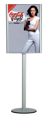 Nehéz és stabil talp,nyilvános helyeken is kihelyezhető. PVC zsanér profil mágneses fedővel és műanyag klipszekkel,melyek a poszter egyszerű cserélhetőségét teszik lehetővé. |